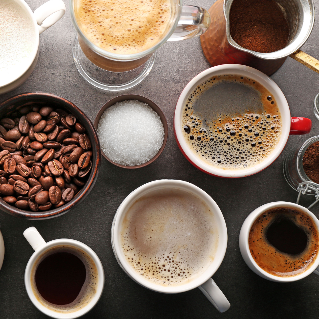 - تحتوي القهوة بأنواعها المختلفة على نسب عالية من الكافيين. تختلف نسبة الكافيين حسب نوع القهوة وحجم الكوب، حيث يحتوي كوب القهوة العادية على حوالي 95 ملغ من الكافيين.